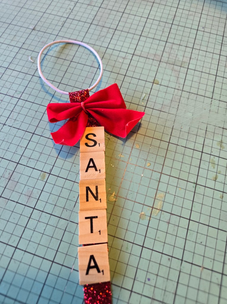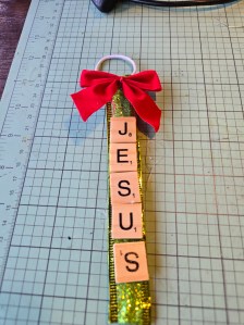 First you will need to cut a piece of ribbon about 8 inches long,