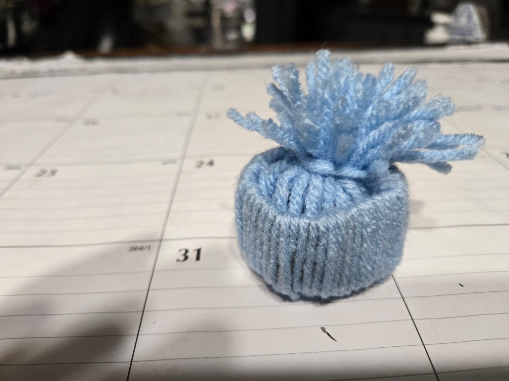 Put look through the toilet paper roll and bring the open strings around the outside and through the loop and pull tight.